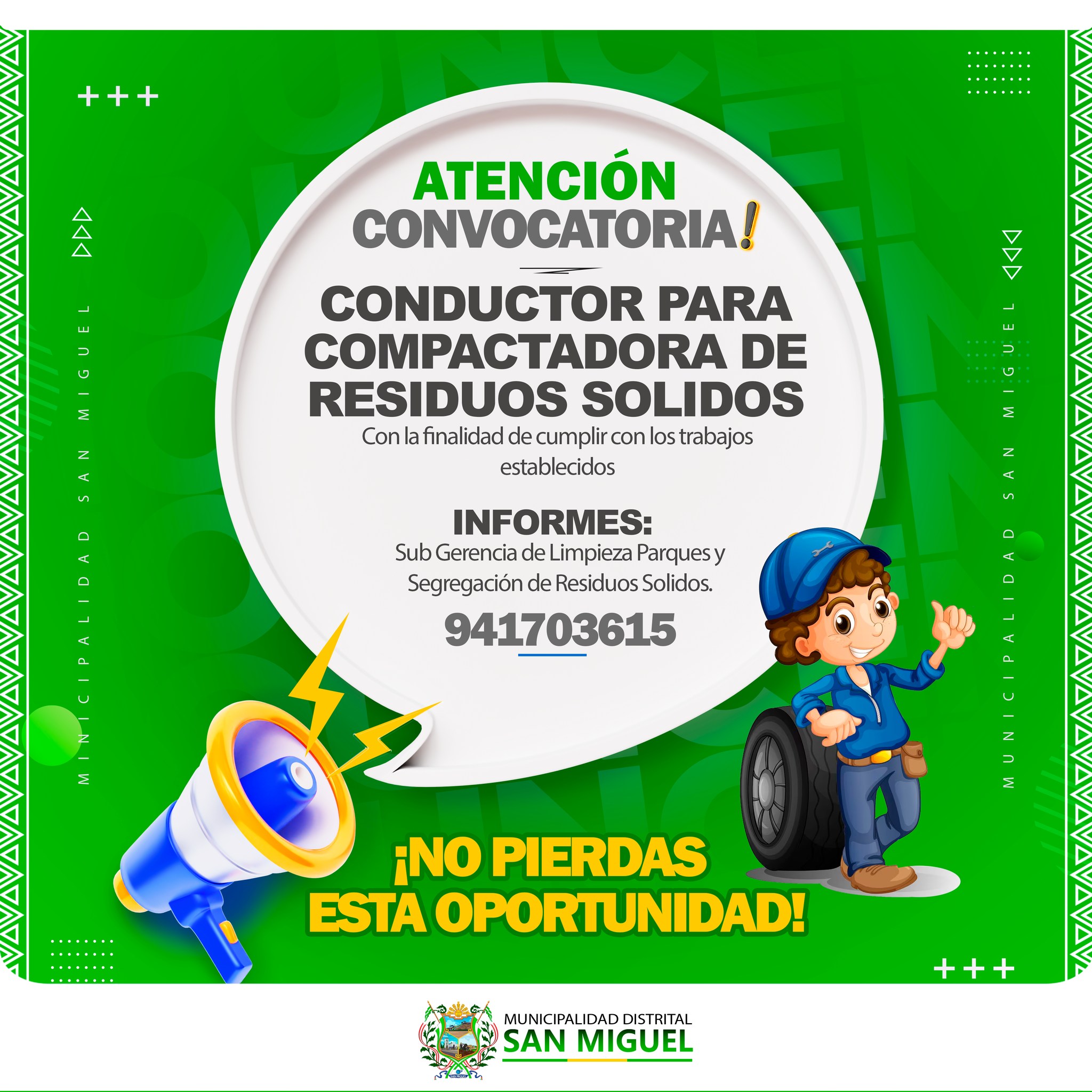 CONVOCATORIA LABORAL PARA CONDUCTORES DE COMPACTADORA adminbackup 2 septiembre, 2025 Noticias 0 Comments Related Posts Alcalde de San Miguel se reunió con Tenientes Gobernadores del Distrito para fortalecer trabajos a favor de la población. Administrador mdsm 26 marzo, 2024 El alcalde del distrito de San Miguel, Cristin Mamani Mamani, se reunió con más de 23 tenient .. MUNICIPALIDAD DISTRITAL DE SAN MIGUEL REALIZA INAUGURACIÓN DE LA XLIV FERIA GANADERA Y AGRÍCOLA “FEGASAM 2024”. Administrador mdsm 11 abril, 2024 Por segundo año consecutivo, la Municipalidad Distrital de San Miguel, a través de la Gerenci .. Leave A Comment Cancelar la respuesta Guarda mi nombre, correo electrónico y web en este navegador para la próxima vez que comente.